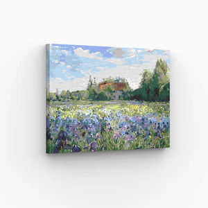 Dieses schöne Motiv zeigt ein Irisfeld am Abend vermutlich in England.