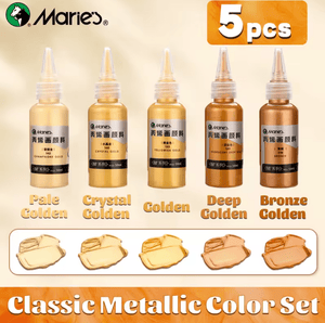 Diese Metallic-Effekt-Farben kommen in fünf verschiedenen Farbtönen von Hellgold bis Kupfer. Die Farben eigenen sich um dem Bild einen goldenen Schimmer zu verleihen. Die Farben haben sind aber weniger gedacht für Volldeckung, sondern eher für Ambient Malerei. Um eine deckende Fläche zu erzielen mit dieser Farbe, wären mehrere Anstriche mit Zwischentrocknung erforderlich. Man kann ganz einfach das Bild zuerst mit den gewöhnlichen Farben bemalen und dann in einem weiteren Anstrich passende Farbfelder mit der Gold Effekt Farbe übermalen.