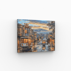 Sie ist berühmt, die Steiner Street in San Francisco, nicht nur für ihre schön restaurierten viktorianischen Häuser, sondern auch für die altehrwürdige Strassenbahn. Dieses stimmungsvolle Bild hat seinen ganz besonderen Reiz.